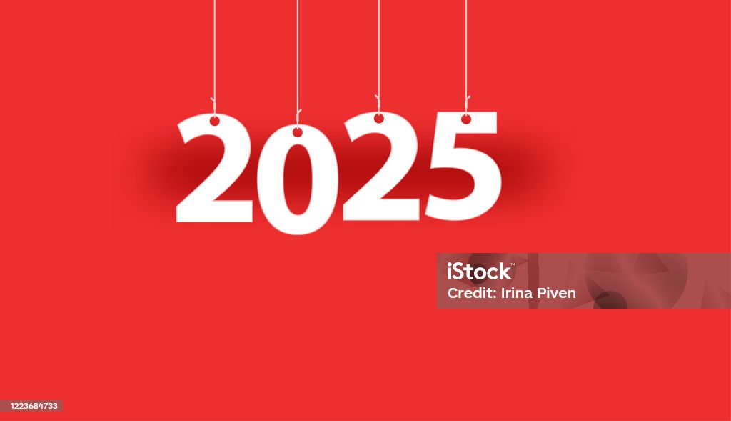 White Word 2025 Word Hanging On The Ropes On Red Background